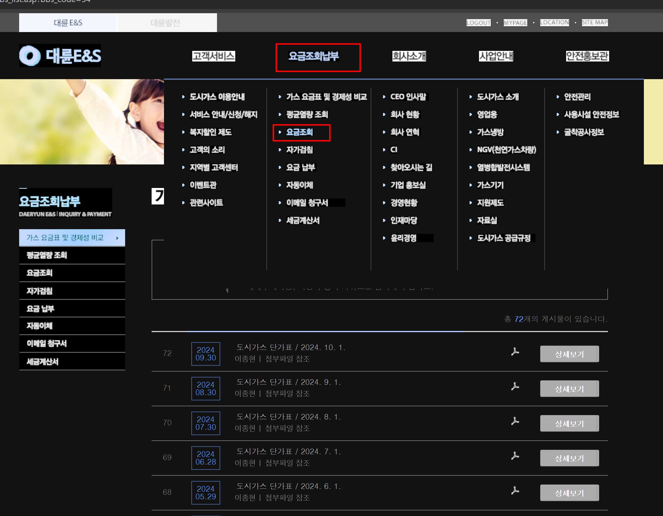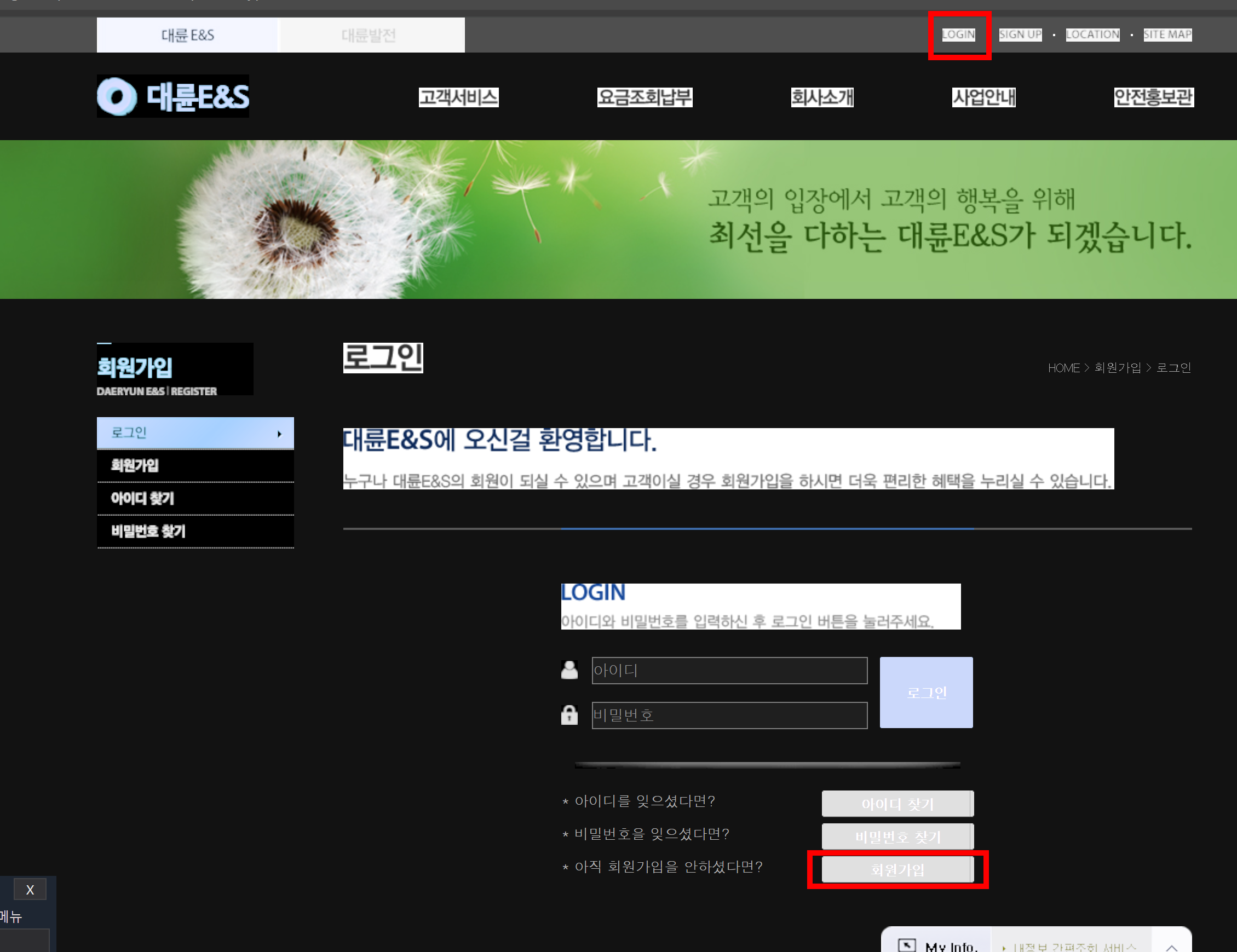도시가스 요글을 확인하기 위해서는 해당 홈페이지에 접속후 회원가입을 해야합니다. 그림에서 보이는 곳으로 들어가 회원가입을 진행해 주세요.