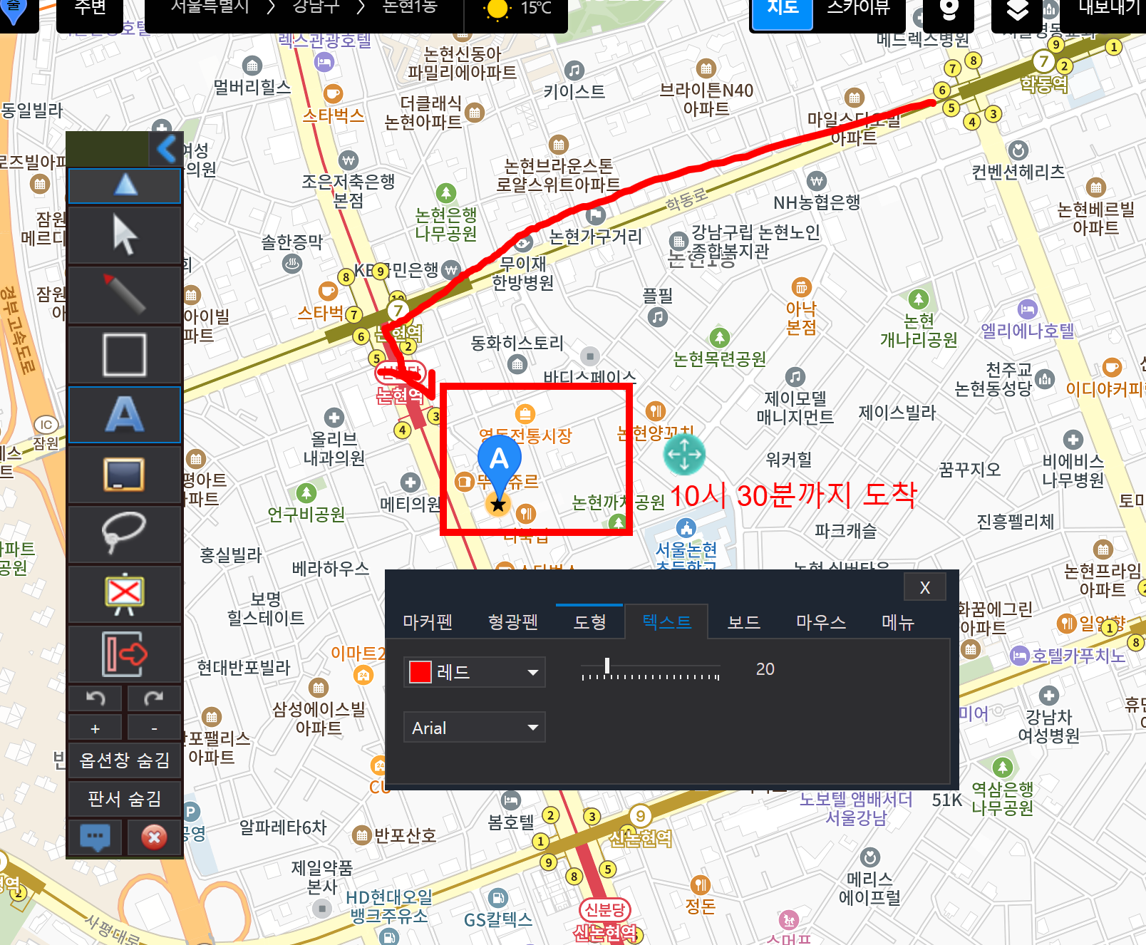예를 들어 지도에 주요한 경로와 포인트를 그려야 하는 상황이다.