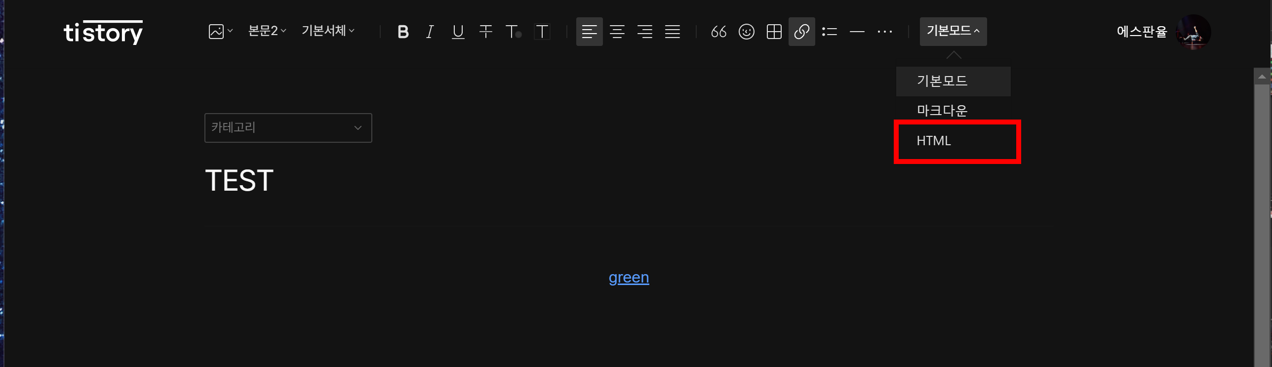- 글쓰기 모드를 HTML로 변경한다.