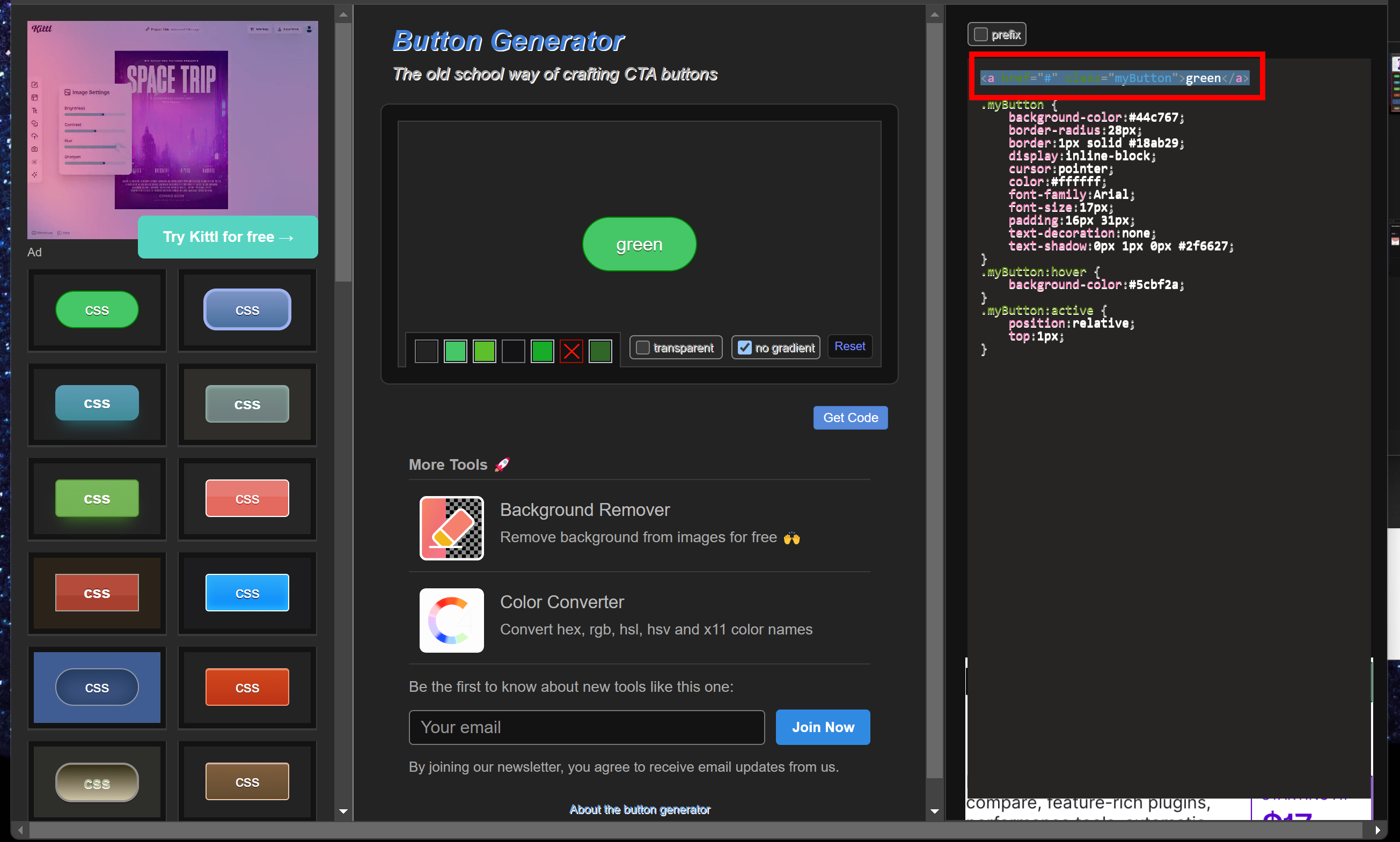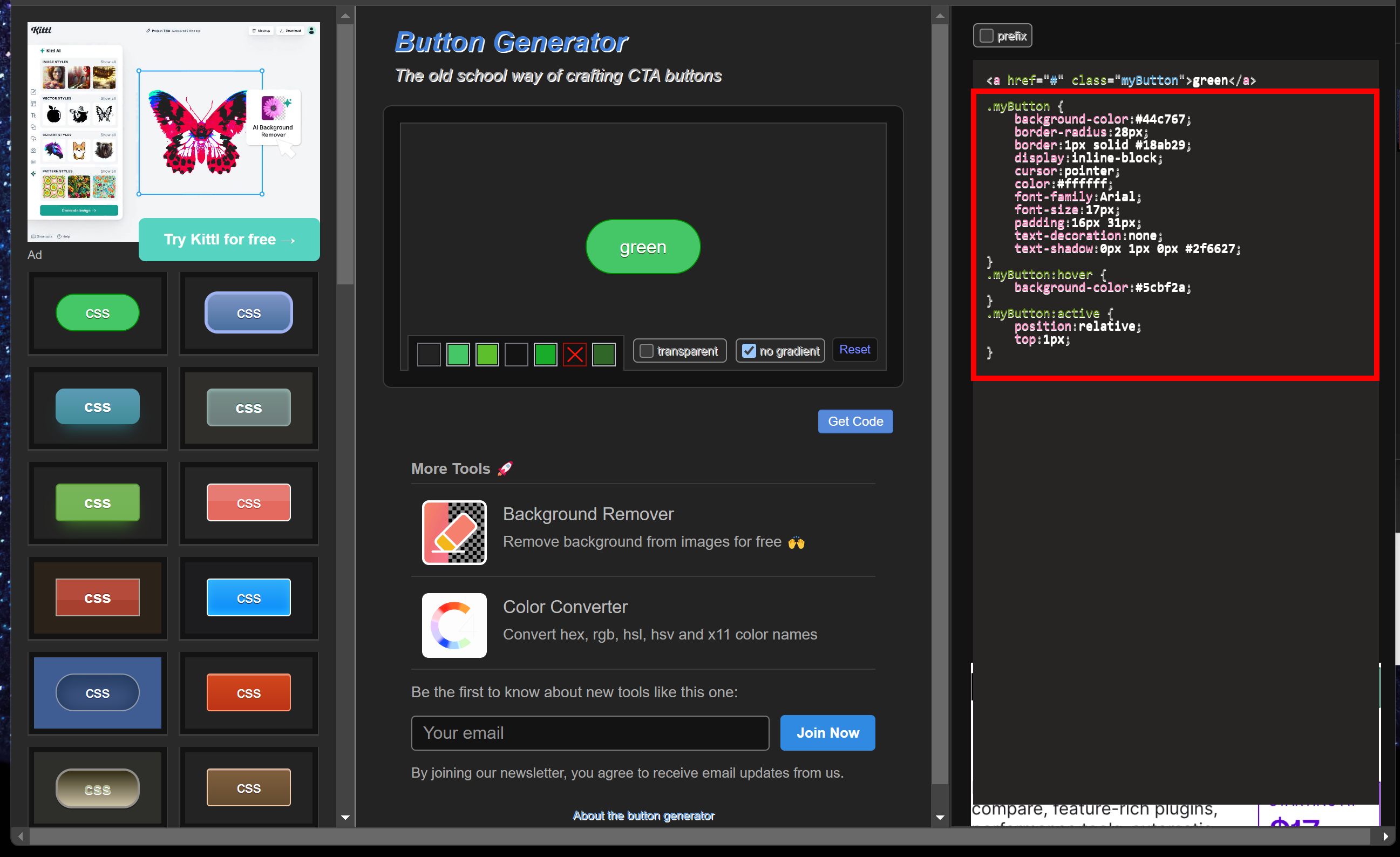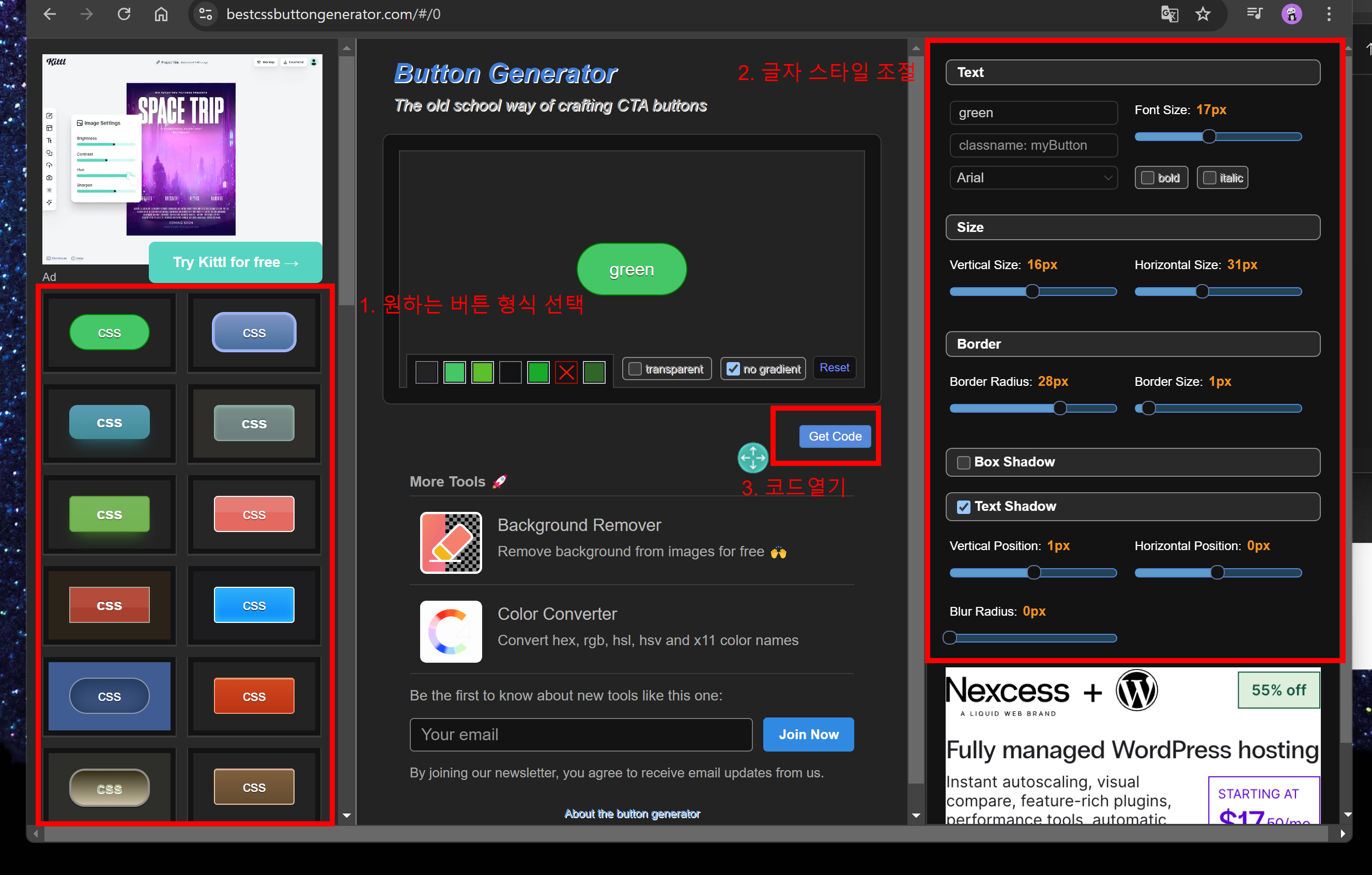 워드프레스도 방법은 동일하다. 우선 해당 사이트에 접속해서 버튼 선택후 CSS코드를 복사해서 가져온다.