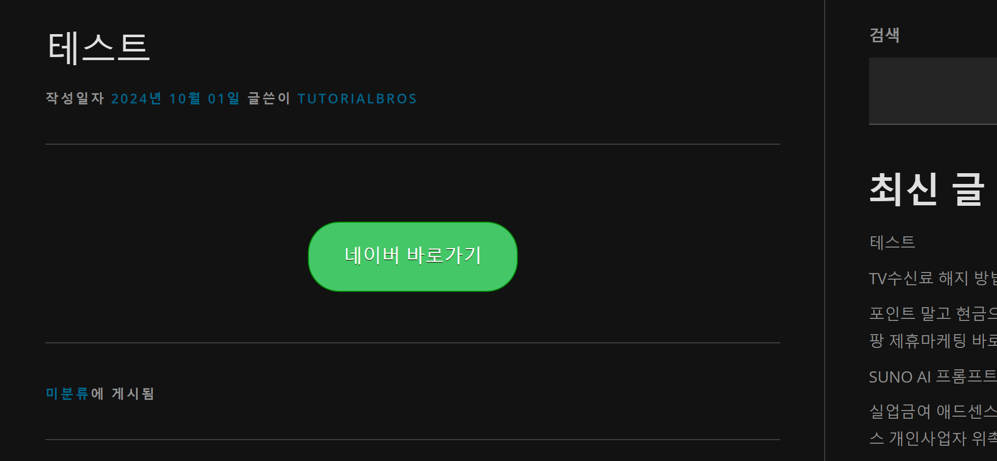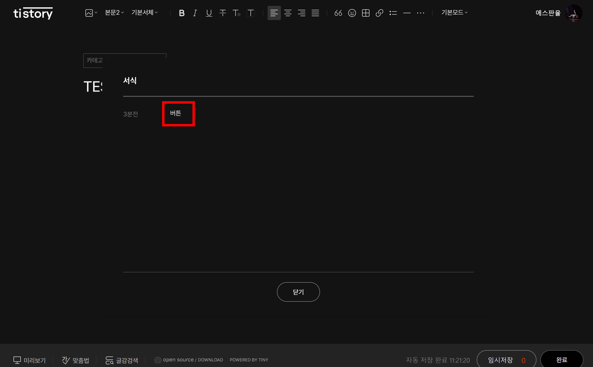 - 서식에서 만든 "버튼"을 눌러 글에 버튼을 삽입한다.