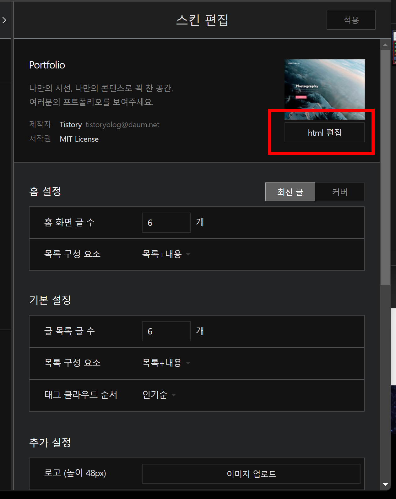 - 티스토리 - 꾸미기 - 스킨 편집으로 이동후 html편집을 눌러준다.