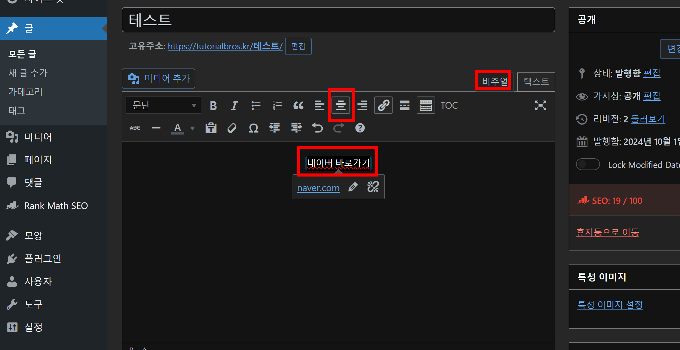 - 글자를 드래그 후 가운데 정렬 해준다.